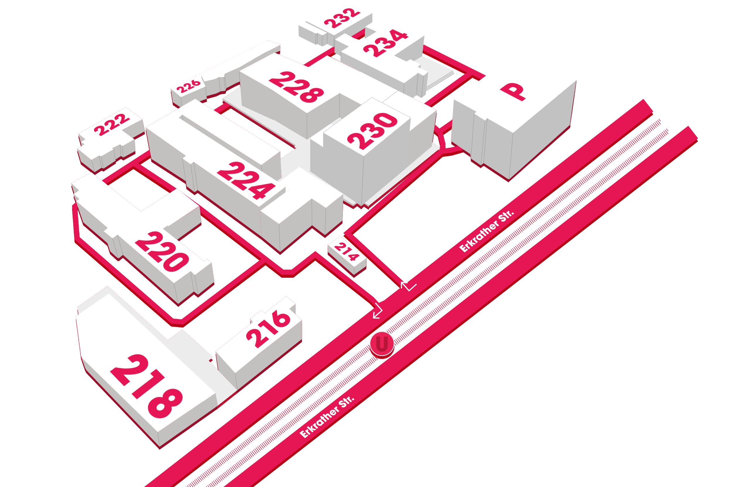 Unser Quartier aus zehn Gebäuden und eigenem Park­haus.